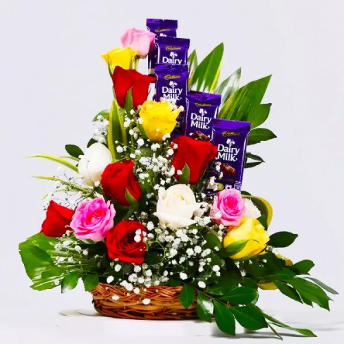 • Flower Type: 14 Mixed Roses Basket Arrangement.