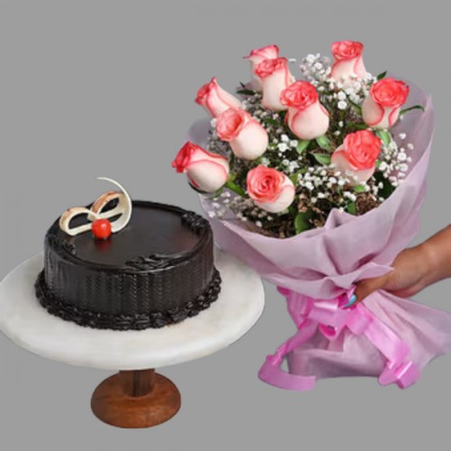 Be sure to share endless smiles with your dear ones with this love-filled combo that consists of a bunch of 10 Emma Roses pleasantly wrapped along with a scrumptious 1/2 kg Chocolate Truffle Cake. Perfect for occasions such as Birthday, Anniversaries, Mother's Day and more to spread happiness.