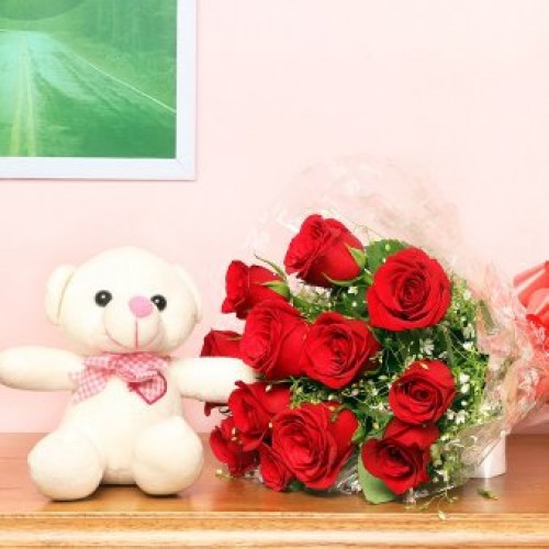 7 RED ROSES AND 6 INCH TEDDY