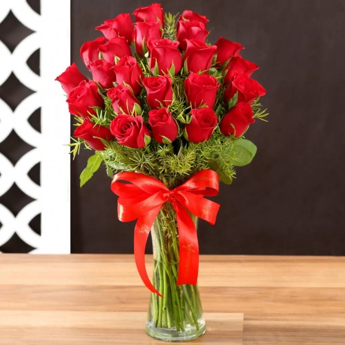24 RED ROSES IN A VASE